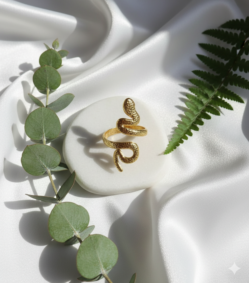 La Bague Serpentis en acier inoxydable doré enroule délicatement le doigt avec élégance et audace. Son design sinueux évoque la grâce d’un serpent, symbole de force et de transformation, tout en restant minimaliste et raffiné. Ajustable et lumineuse, elle capte la lumière à chaque mouvement, apportant une touche de mystère et de modernité à votre style.