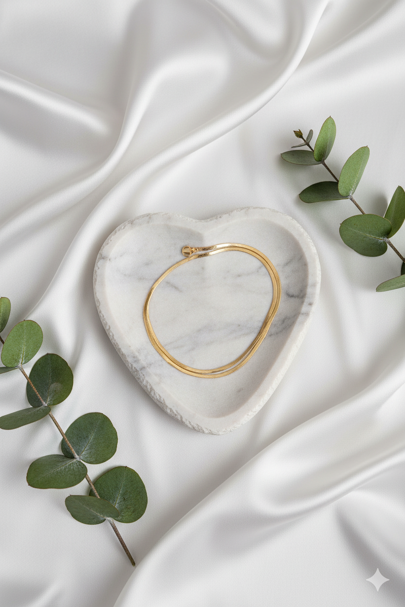 Le Collier Sirenia en acier inoxydable doré 316L incarne la finesse et le raffinement. Il se compose d’une chaîne miroir polie, fluide et lumineuse, accompagnée d’une chaînette de réglage (≈7 cm) qui apporte flexibilité et confort.