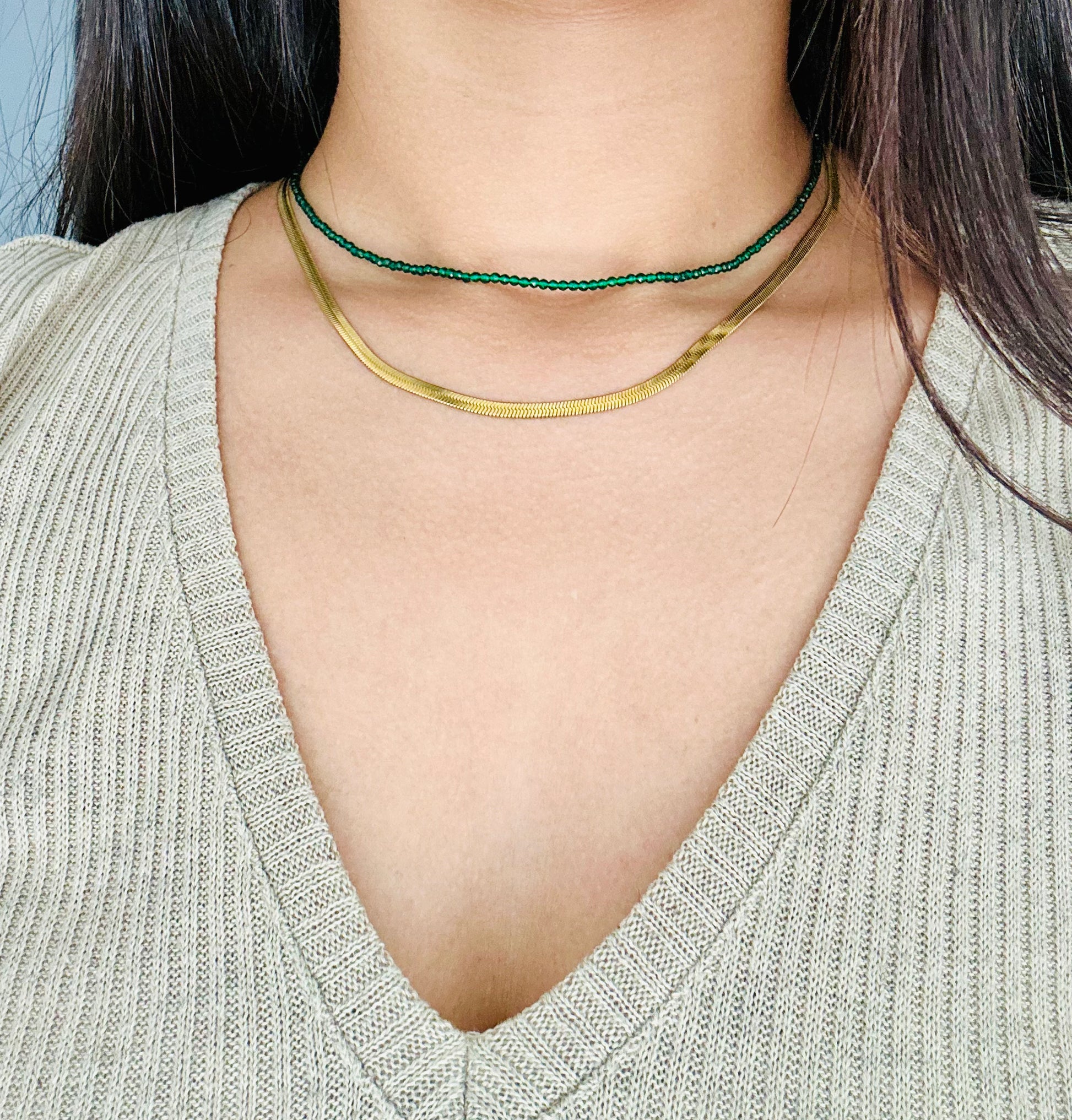 Le collier long mesure environ 80- 90 cm.